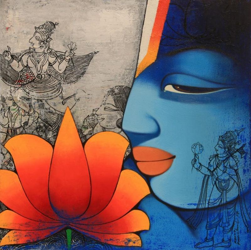 Lord Ram (Krishna Lotus Gaze) Acrylic Religious Painting