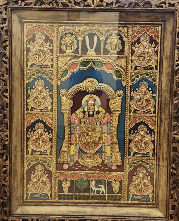 Our collection of Balaji Tanjore paintings brings together timeless works rooted in the traditional Thanjavur style. Each painting is crafted using classic techniques with rich gold foil, natural colors, and intricate detailing. The collection includes artworks in various mediums such as gold leaf on wooden panels, embossed surfaces, and mixed media formats. Ideal for art collectors, buyers, and resellers, these pieces feature Lord Balaji in distinctive forms—each one reflecting precision, devotion, and heritage. Whether you’re looking to build a portfolio or add cultural depth to your space, this collection offers authentic art that stands the test of time.