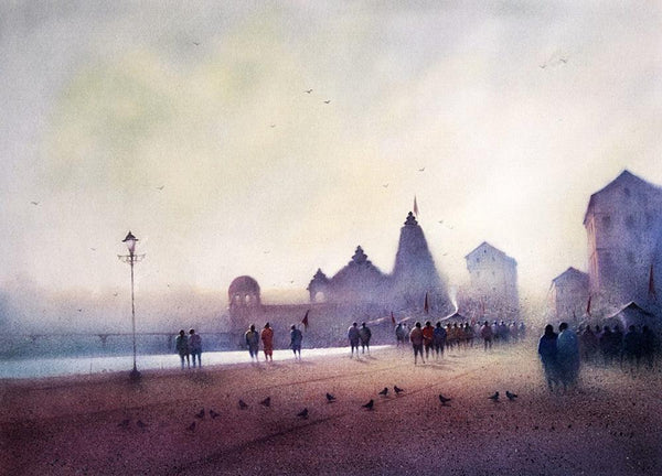 "Banaras 1 (Misty Morning at the Ghat)", Cityscape PaintingVendor: