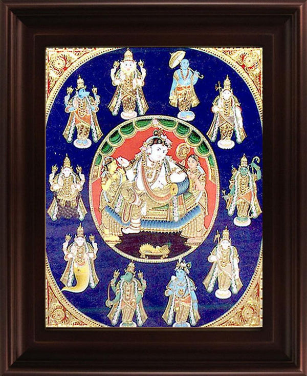 "Dasavatharam Tanjore Painting (Dashavatara)", Religious Traditional ArtVendor: