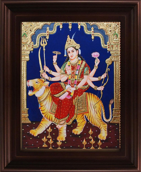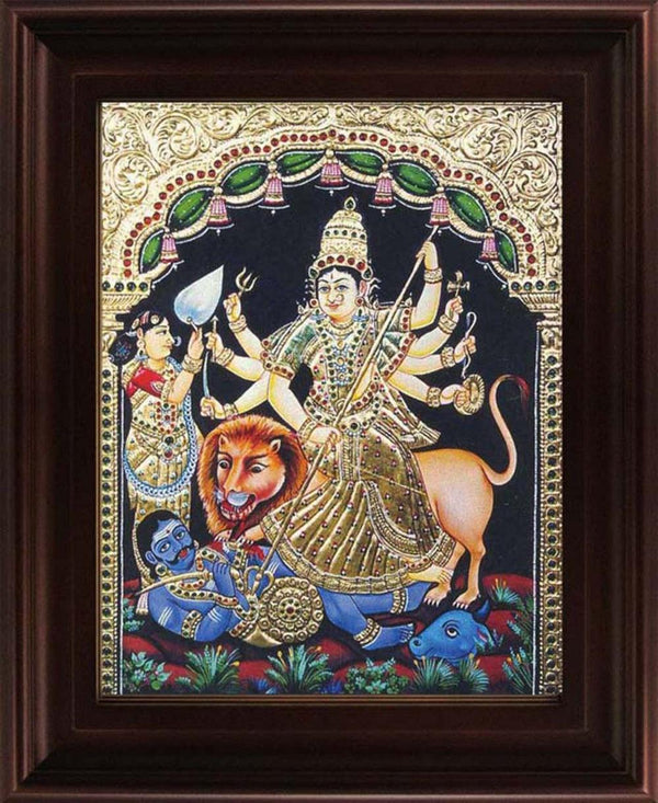 "Mahishasuramardini Tanjore Painting (Goddess Durga on Tiger)", Religious Traditional ArtVendor: