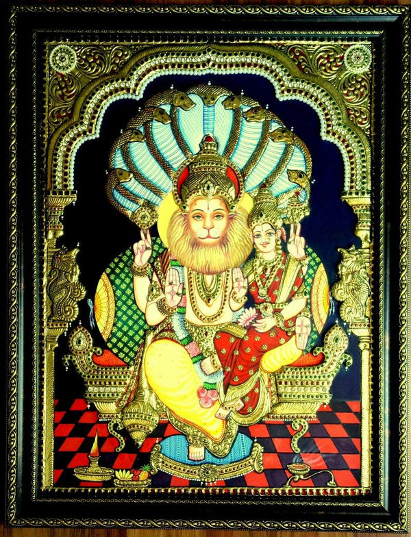"Lakshmi Narasimha Tanjore Painting (The Lion Protector)", Religious Traditional ArtVendor: