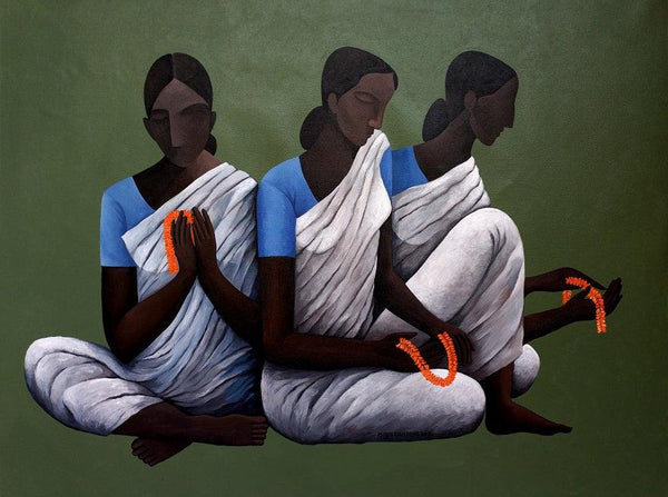 "Village Girls (Tranquil Waters)", Figurative PaintingVendor: