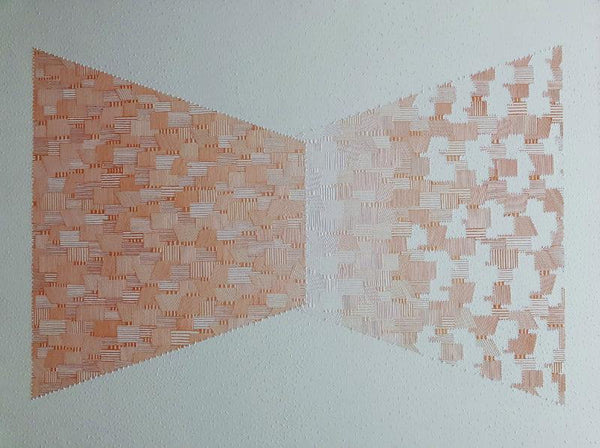 In her paintings she has represented lines as our thoughts. These lines are the metaphor of an individual having different thought processes. She believes that the quality of our thinking determines the quality of our life. We don't see things as they are, we see things as we think that they are. Beauty is in our thoughts. Mind wants to see and control everything around us. Everything around seems connected to each other and yet remains aloof in reality. Freethinkers are those who are willing to use their minds without fearing to understand things that clash with their own thoughts. This state of mind is essential. Repetitive lines achieve a specific effect in her works. She used different types of lines repetitively in different arrangements, resulting as a silent dialogue with our own thoughts. These lines in her paintings are of different kinds and gives experience to the viewer to interact with their thoughts and calm their mind.