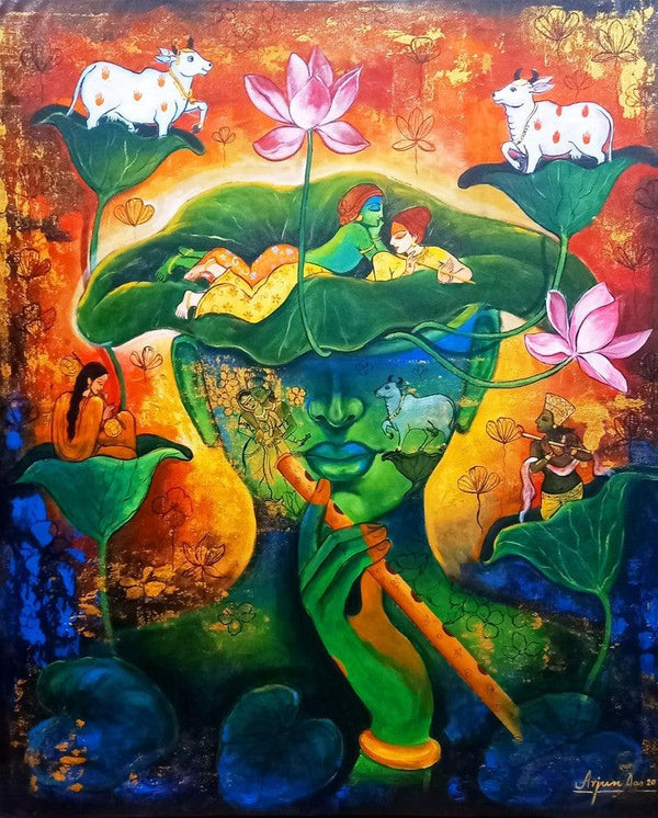 "Krishna 2 (Krishna Flute Melody)", Religious PaintingVendor: