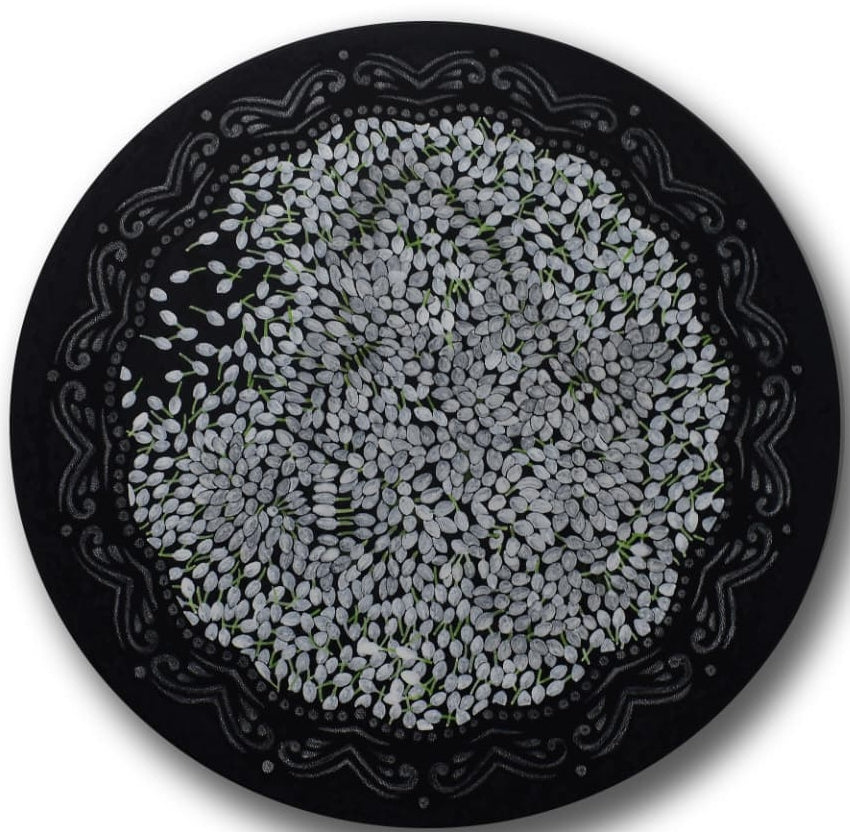 Sprinkling Fragrance 3' nature acrylic painting by artist Raju T, 48x48 inch, on canvas