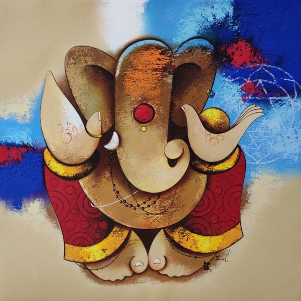 'Balaganapati' religious acrylic painting by artist Paras Parmar, 30x30 inch, on canvas