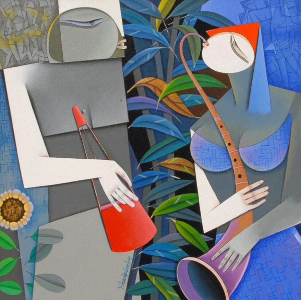 Figurative acrylic painting titled 'Rhythm And Melodies 3', 37x34 inches, by artist Pradip Sarkar on Canvas