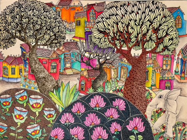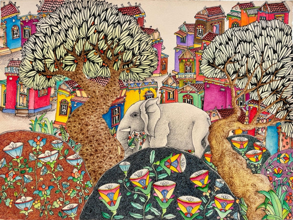 "Untitled 12 (An Elephant's Playful Moment)", Cityscape paintingVendor: Rajasekhar Komakula