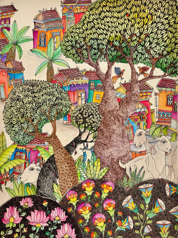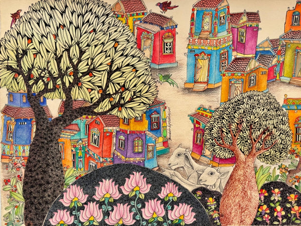 "Untitled 14 (A Vibrant Village Awakening)", Cityscape paintingVendor: Rajasekhar Komakula