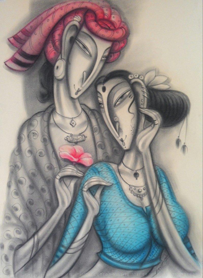 "Lovely Couple (A Tapestry of Traditions)", Figurative PaintingVendor: