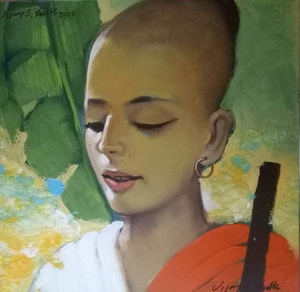 Vijay Gille's Painting show an artistic understanding much beyond his years. His forms are distinctive, rich earthen colours complement life like themes drawn from the artist's personal sensibilities and experience. His warm rural shadows show his grasp of the mundane. each painting maintains a throbbing vibrance despite the simplicity of the theme