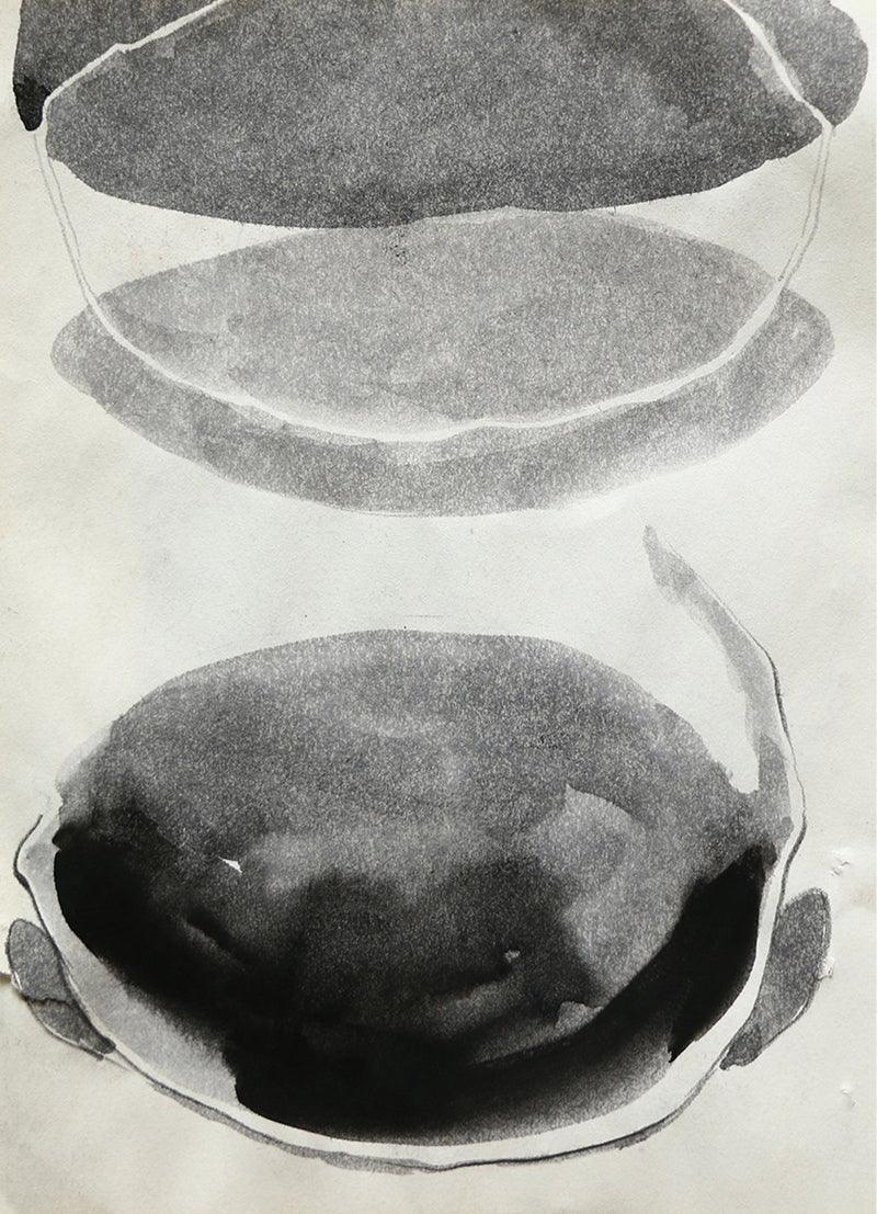 This abstract artwork explores the interplay of form and void through a series of overlapping shapes. Rendered in shades of gray, the forms create a sense of depth and dimension, suggesting a space between realities or a moment of transition. The minimal use of color allows the viewer to focus on the interplay of light and shadow, and the subtle nuances of the shapes themselves.