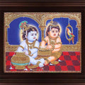 Tanjore Painting of Krishna and Balaram's Childhood Antics