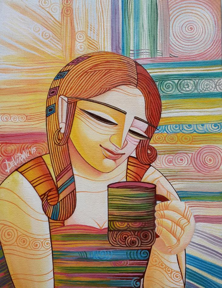 First Cuppa (A Moment of Serenity) Acrylic Figurative Painting