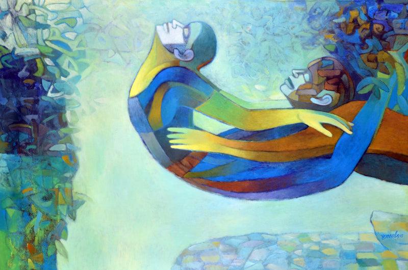 Flying Couple (Flying Couple) Acrylic Figurative Painting