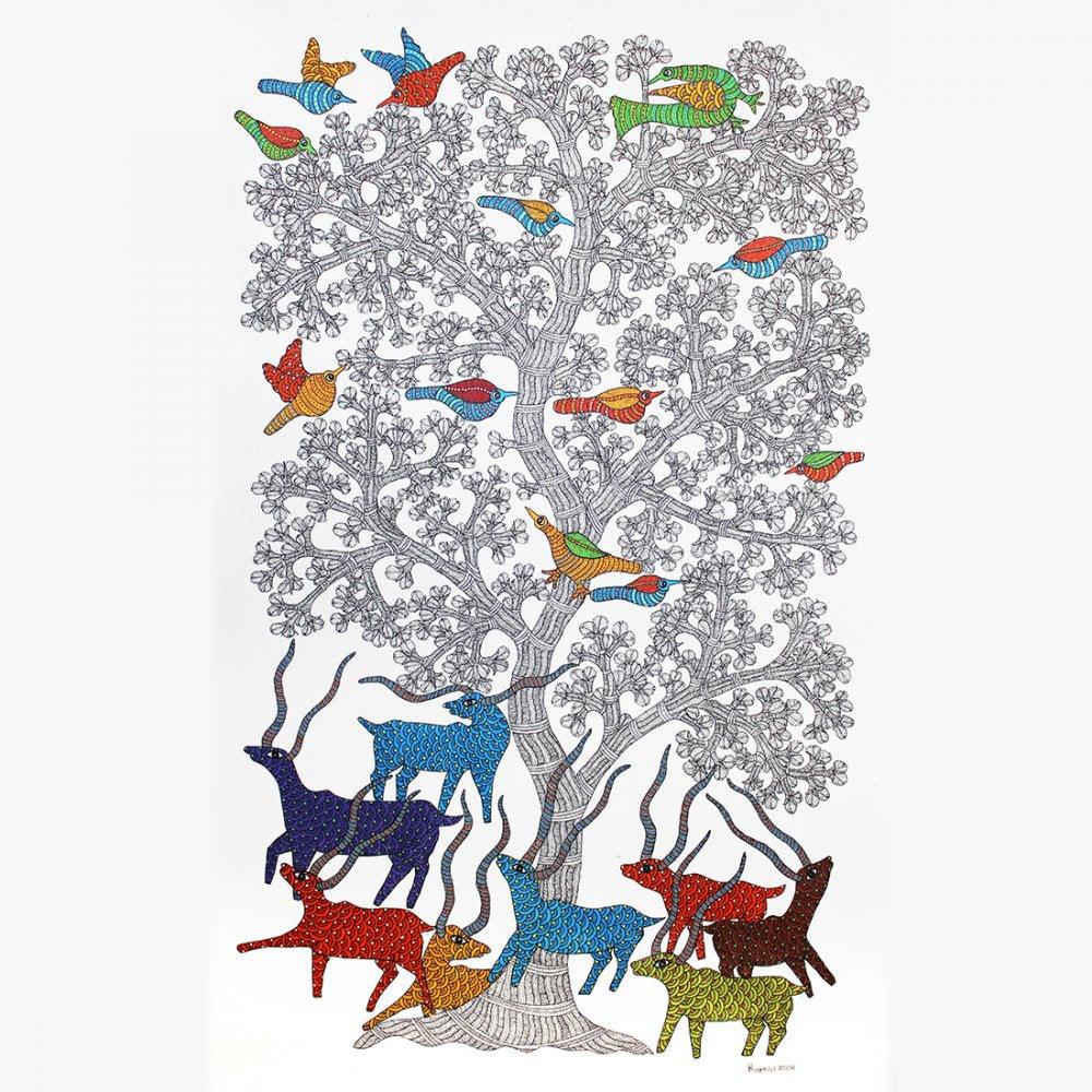 Forest Scene Gond Art Paper Gond Traditional Art