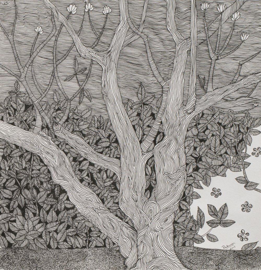 Frangipani Ink Nature Painting