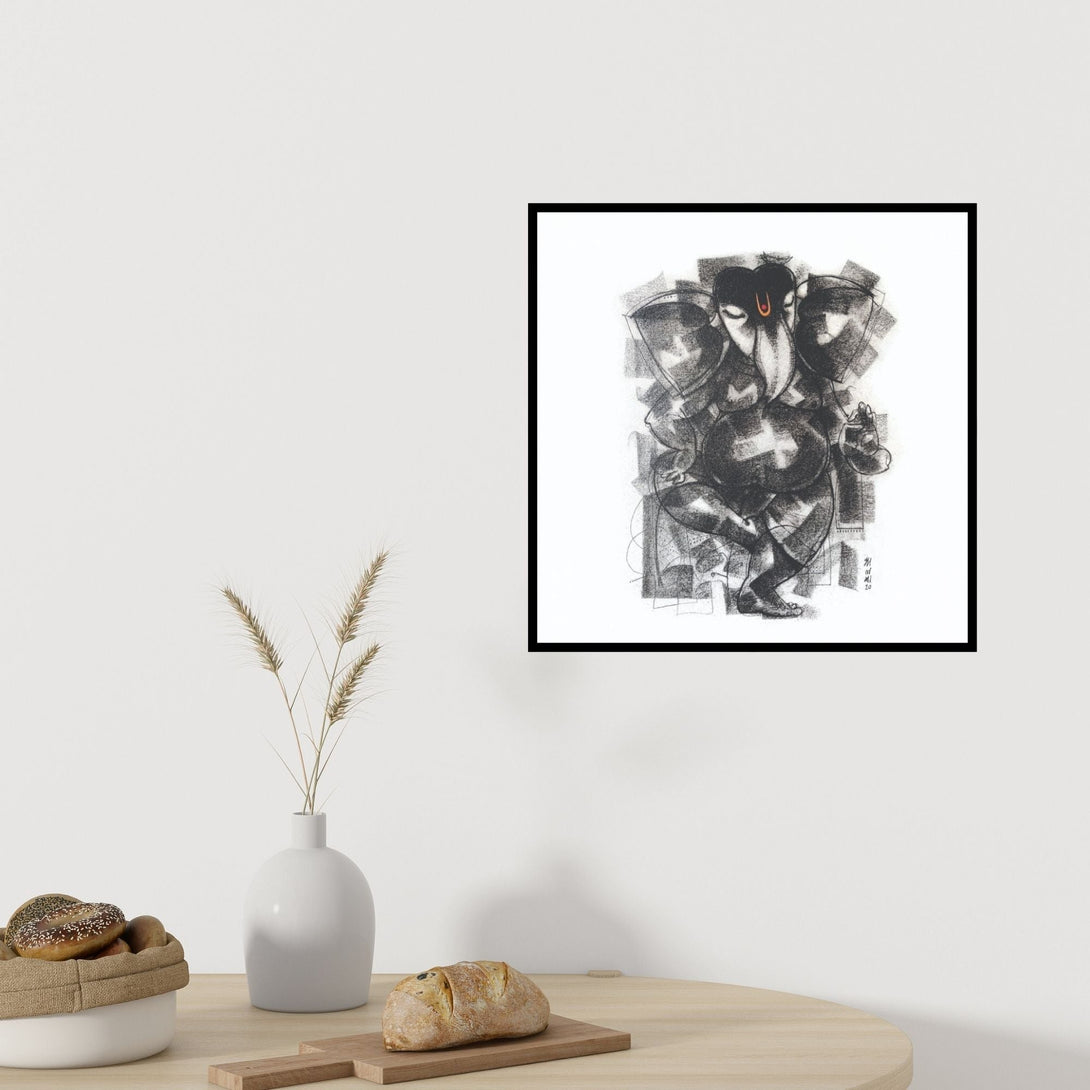 Gajmukh (Gestural Ganesh) Charcoal Religious Painting