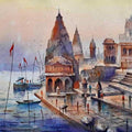 Ganga Ghat (Golden Dawn on the Ganges) Watercolor Religious Painting