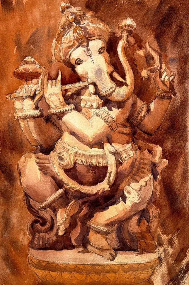 Ganpati Ji Watercolor Religious Painting