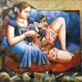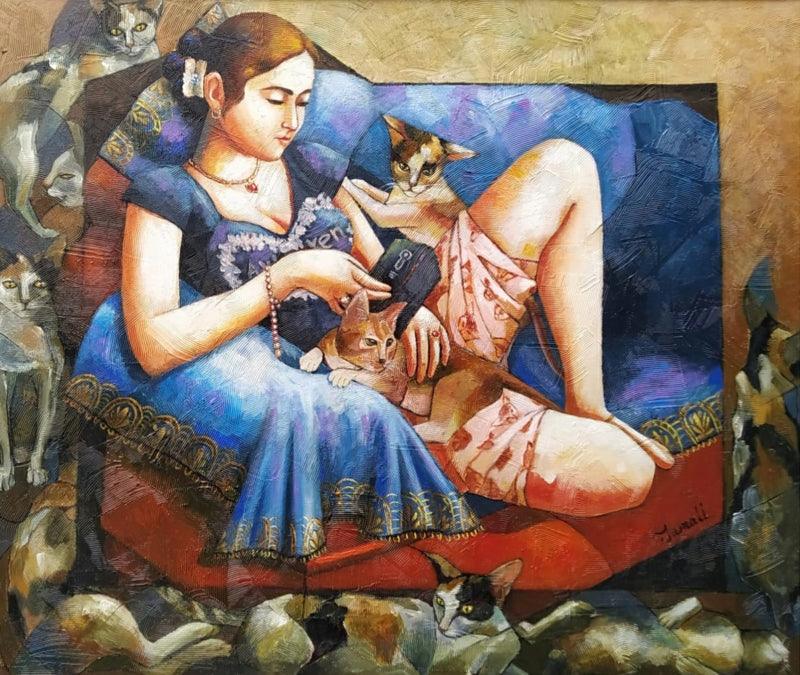 Girl With Cat (Feline Companion) Acrylic Figurative Painting