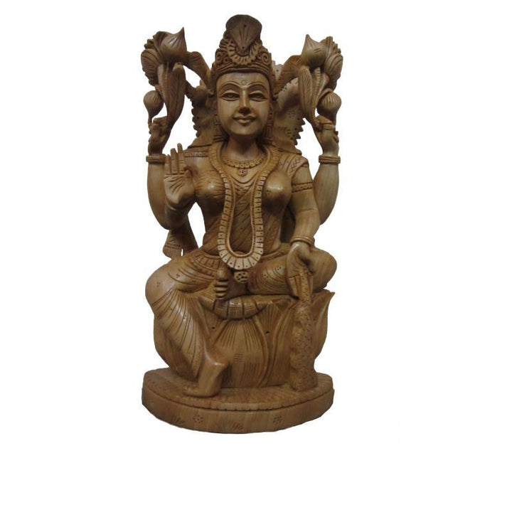 Goddess Lakshmi Sitting With Kala Wood Religious Handicraft