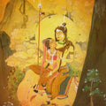 "Cosmic Union" by an unknown artist depicts the divine couple Shiva and Shakti, representing the inseparable forces of creation and energy. The artwork features Shiva and Shakti seated together, exuding a sense of tranquility and cosmic balance. Shiva, with his iconic trident and matted hair, embodies asceticism and detachment, while Shakti, adorned in traditional attire, symbolizes power and nurturing energy. Their union signifies the harmony of opposing forces and the source of all creation. The use of warm, earthy tones and a stylized rendering adds a unique charm to this depiction of the divine couple.