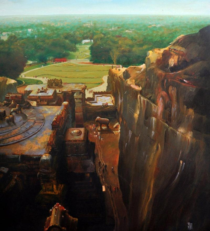 The Kailasa Temple (Kailasa Temple from Above) Oil Cityscape Painting