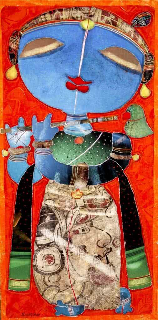 Krishna Playing Flute 2 Mixed Media Religious Painting