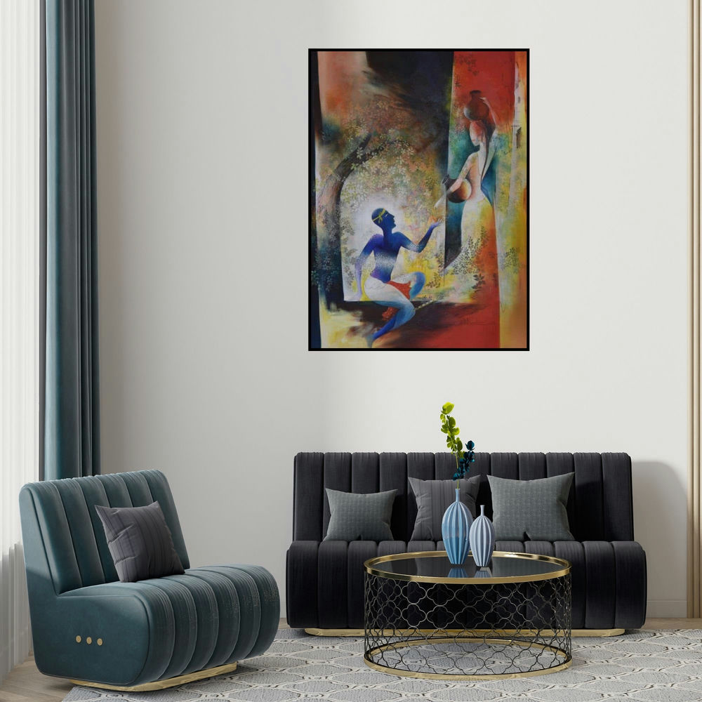 Krishna Resonance (Rural Encounter) Oil Contemporary Painting