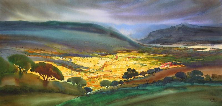 Krishna Valley Panchgani 6 (Stormy Skies) Watercolor Landscape Painting
