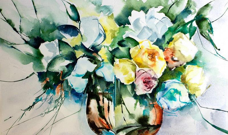 La Groupie Du Pianiste (Reflections of Spring: A Floral Reverie) Watercolor Still-Life Painting