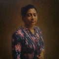 Artwork depicts a solitary figure, seated on a chair in a simple, almost minimalist setting. The figure is turned away from the viewer, emphasizing their isolation and introspection. The use of light and shadow creates a contemplative atmosphere, highlighting the figure's posture and the surrounding space. The artwork invites viewers to reflect on themes of solitude, contemplation, and the search for inner peace.