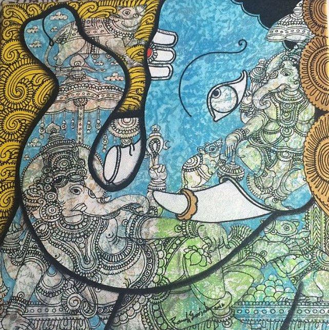 Lord Ganesh (Ganesha with Miniature Scenes) (Ganesha Celestial Form) Acrylic Religious Painting