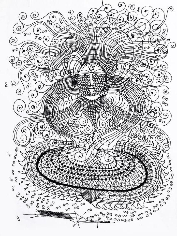 This intricate line art by Hemant Thorve portrays a mystical face, its features composed of flowing lines and intricate patterns. The artist's skillful use of line creates a sense of mystery and intrigue, as if the face is emerging from a dream or a vision. The artwork evokes a sense of wonder, spirituality, and the hidden depths of the human psyche.