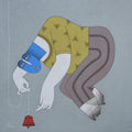 This painting depicts a stylized figure reaching towards a bell suspended from the ceiling. The figure's elongated limbs and simplified features create a sense of surrealism and introspection. The vibrant colors and bold lines add a sense of energy and dynamism to the composition. The painting invites viewers to contemplate the allure of the unknown and the human desire to explore and discover.