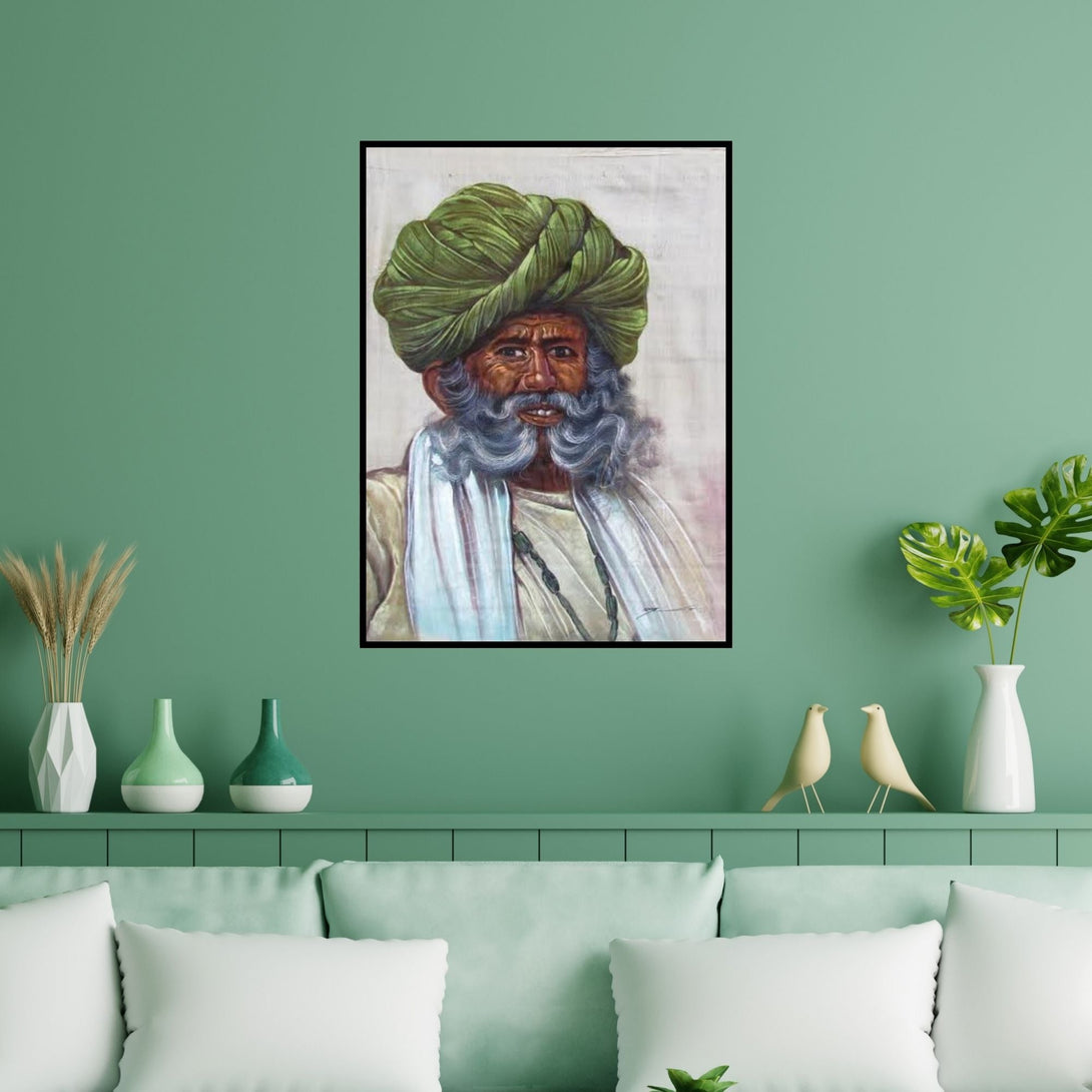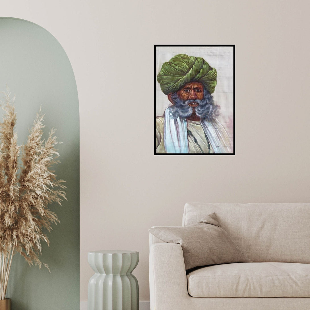 Preview of 'Old Man' Painting by Indian Miniture shown on a wall in a furnished room.