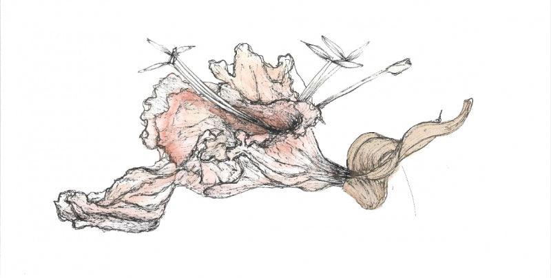 This delicate drawing captures the fleeting beauty of a withered flower. The artist's use of ink and watercolor creates a sense of fragility and transience, highlighting the delicate nature of the subject. The intricate details of the flower's petals and the subtle color palette evoke a sense of nostalgia and contemplation.