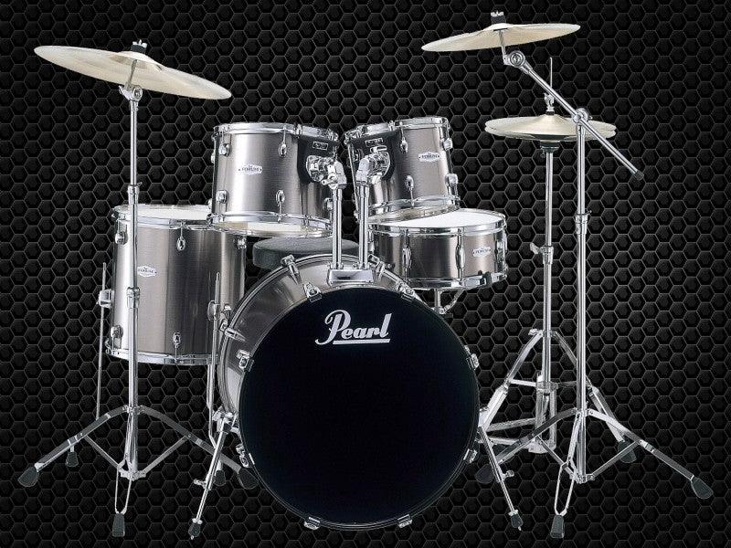 A complete Pearl drum kit ready to rock.