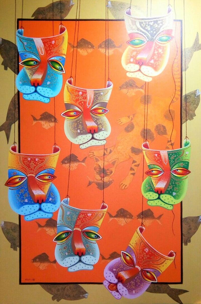 The Player (A Maskerade of Faces) Acrylic Animal Painting