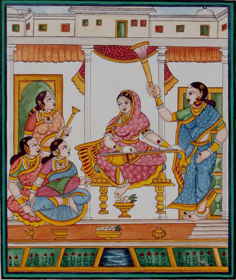 Rani Playing Veena (Royal Melody) Watercolor Figurative Painting