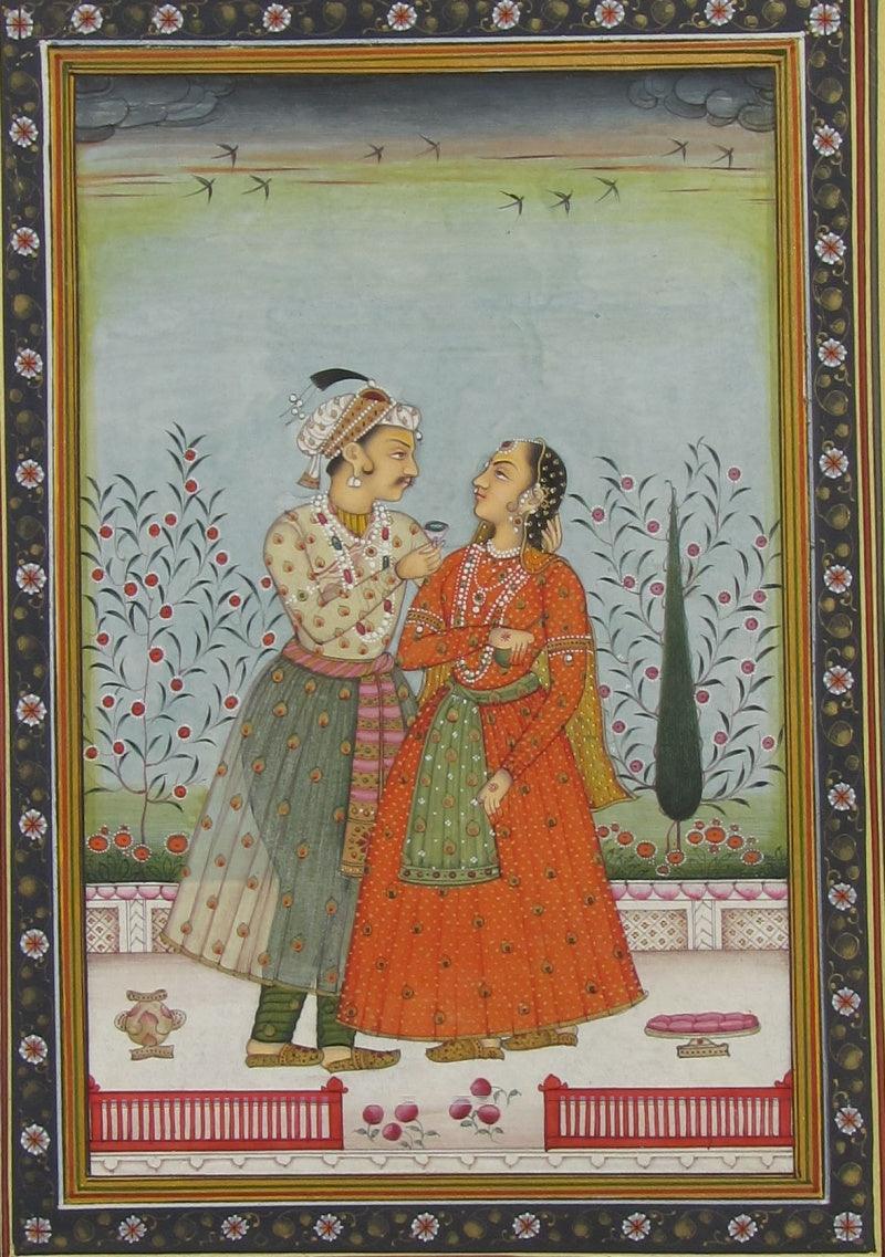 Romantic Mughal Pair Mughal Figurative Traditional Art