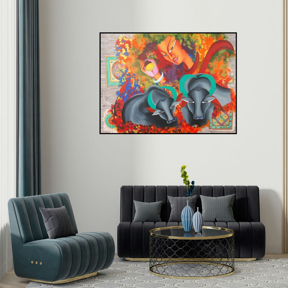 Shivohum 5 (The Divine Connection) Acrylic Figurative Painting