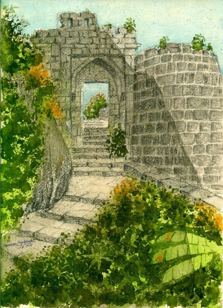 Sinhagad Entrance Pune (Gateway to History) Watercolor Cityscape Painting
