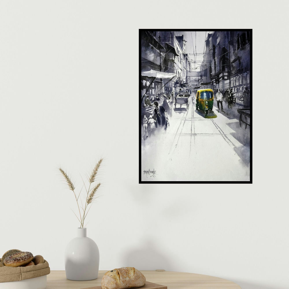 Landscape watercolor painting titled 'Street', 30x22 inches, by artist Sanjay Dhawale on Handmade Paper