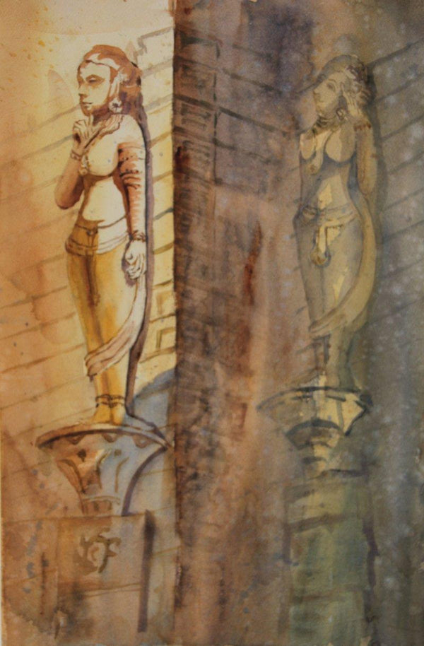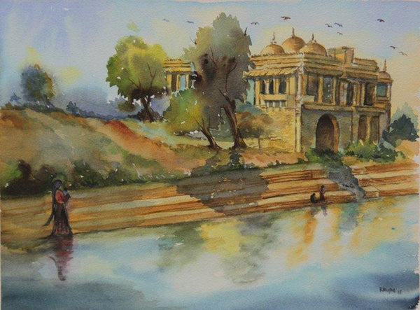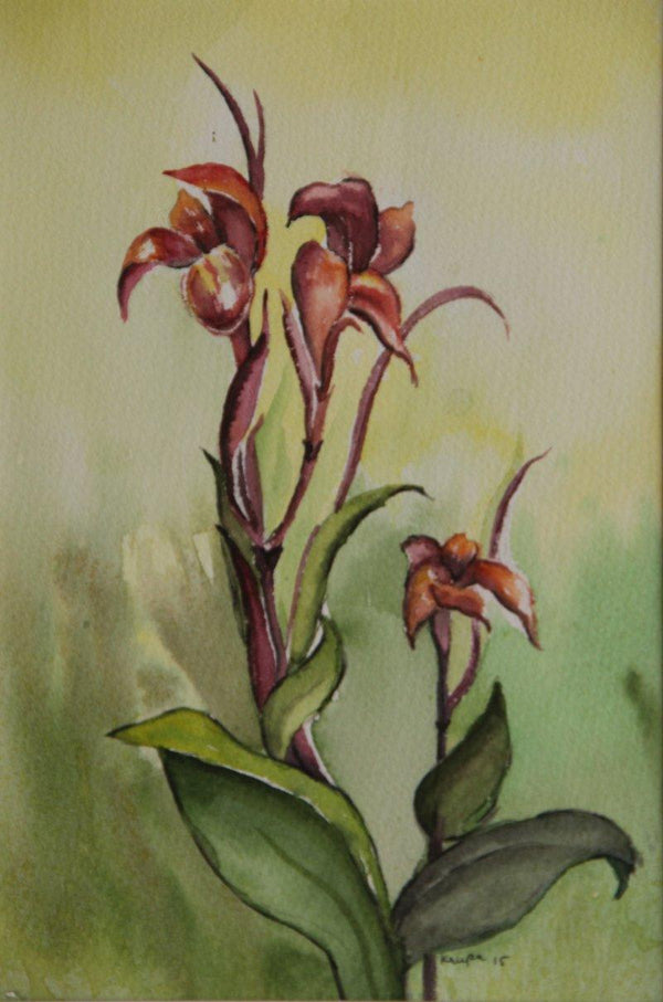 "Sun Flower I" by Krupa Shah is a beautiful watercolor painting that captures the vibrant essence of sunflowers. The artwork features three sunflowers in various stages of bloom, set against a warm, textured background. The artist's use of color and delicate brushstrokes brings the flowers to life, emphasizing their radiant yellow petals and lush green leaves. The composition evokes a sense of joy and the natural beauty of these cheerful flowers. The artist's signature, "KRUPA," is visible in the lower left corner.