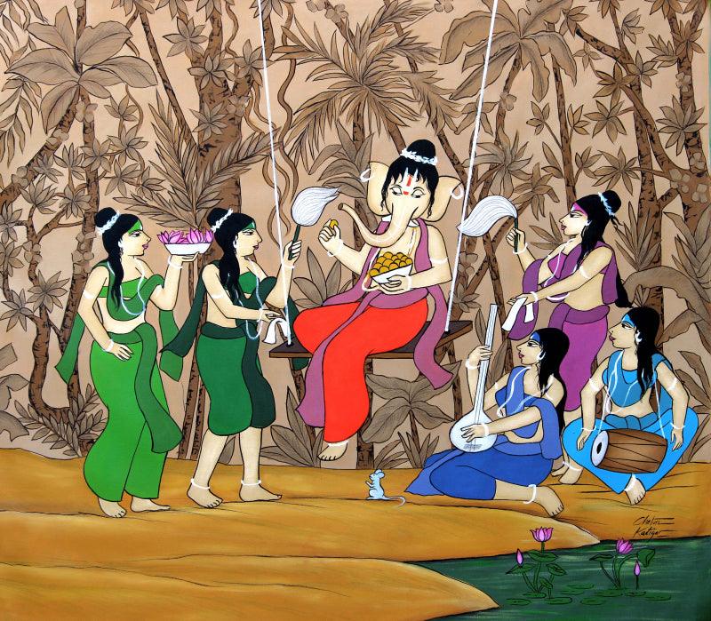 Swinging Ganesha Acrylic Religious Painting