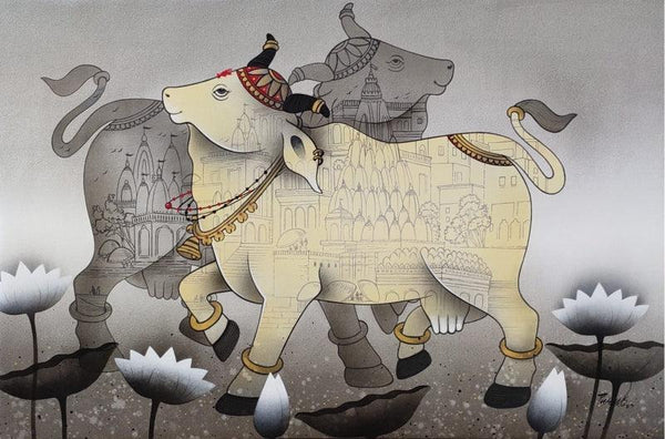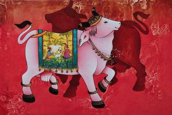 Tirth (Sacred Cow Towards the Sun) Acrylic Religious Painting
