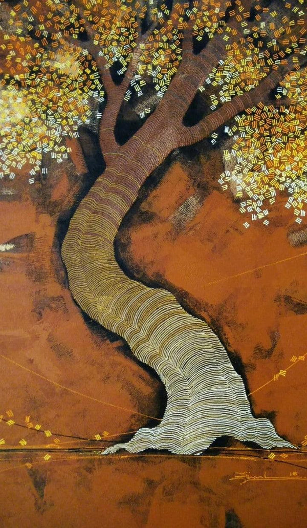 Nature acrylic painting titled 'Tree 5', 30x18 inches, by artist Rahul Dangat on Canvas